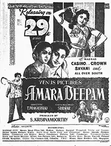 Amara Deepam (transl.The Eternal Lamp) is a 1956 Indian Tamil-language romantic drama film directed by T. Prakash Rao. A remake of the 1942 American film Random Harvest, it stars Sivaji Ganesan, Savitri and Padmini. The film, produced by Venus Pictures, was released on 29 June 1956. It was remade in Hindi as Amardeep (1958).[2][3]