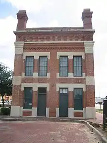 The rectangular shaped building measures 32 feet (9.8 m) by 88 feet (27 m) and its exterior architecture demonstrates its importance to the Illinois Central Railroad. Constructed of red brick with extensive limestone detailing, the depot's size, height, and ornate brick/stone detailing combine to give it an imposing and elegant character.[2]