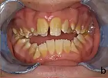 - ↑ Hoppenreijs TJ, Voorsmit RA, Freihofer HP (August 1998). "Open bite deformity in amelogenesis imperfecta. Part 1: An analysis of contributory factors and implications for treatment". Journal of Cranio-Maxillo-Facial Surgery. 26 (4): 260–6. doi:10.1016/s1010-5182(98)80023-1. PMID 9777506.