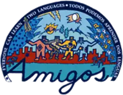 The Amigos School uses a dual-language immersion model, which gives students half of their instruction in English and the other half in Spanish. The three major goals of the Amigos School are that all students become bilingual and bi-literate, develop cross cultural understanding, and provide an environment for families to share their cultural heritage.[5]