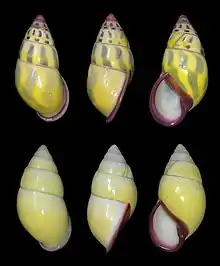 Amphidromus latestrigatus is a species of air-breathing land snail, a terrestrial pulmonate gastropod mollusc in the family Camaenidae. It is found in Indonesia and lives on trees bushes.[1]