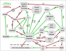 The 2006 edition of the book has neither a table of contents nor an index, but can be summarized as the presentation of various positive and negative causal links, shown in the graphic with corresponding page numbers.