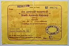 Shet Anandji Kalyanji Trust Donation Receipt