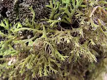 Anaptychia ciliaris, commonly known as the great ciliated lichen or eagle's claws, is a species of fruticose lichen in the family Physciaceae.[2] It is predominantly found in Northern Europe, with its range extending to European Russia, the Caucasus, Central and Southern Europe, the Canary Islands, and some parts of Asia. First mentioned in botanical literature by Italian botanist Fabio Colonna in 1606, the species was formally described by Carl Linnaeus in 1753, who highlighted its unique physical characteristics such as its grey colour, its unusual leafy form with linear fringe-like segments, and the presence of hair-like structures (cilia). This lichen is adaptable in its choice of substrates, mostly growing on tree barks, and less commonly on rocks.