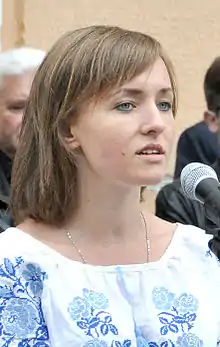 Anastasia Dmytruk (Ukrainian: Анастасія Дмитрук, Russian: Анастасия Дмитрук; born 31 January 1991, in Nizhyn) is a Ukrainian poet who writes in the Russian and Ukrainian languages.[1] She writes poetry and has worked as an information security specialist after graduating from Kyiv Polytechnic Institute.[2] Never ever can we be brothers, written in Russian, has become her most widely cited poem.