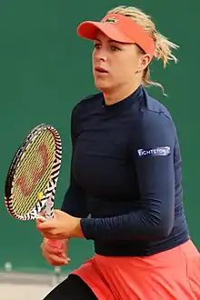 Anastasia Sergeyevna "Nastia" Pavlyuchenkova[3] (Анастаси́я «Настя» Серге́евна Павлюче́нкова; born 3 July 1991) is a Russian professional tennis player. A junior prodigy, Pavlyuchenkova won three Grand Slam titles and became the junior world No. 1, in January 2006, at the age of 14. She continued her success after turning professional, reaching a career-high singles ranking of world No. 11 on 8 November 2021.[4]