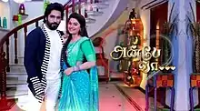 Anbe Vaa (transl. Come My Dear) is a 2020 Indian Tamil language soap opera on Sun TV. It was premiered on 2 November 2020 from Monday to Sunday. The show stars Viraat, Shreegopika Neelanath and Delna Davis.[2] It is also available on the digital platform Sun NXT. This series was launched along with Kannana Kanne.
