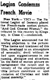 - ↑ "Bardot Vs Hierarchy "C"". Variety. 4 December 1957. p. 14. Retrieved 19 August 2023.