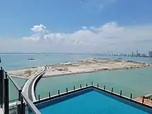 Phase 1 of the reclamation project was completed in 2019, paving the way for the construction of The Meg and Arica, the first residential properties on the islet.[1] As of 2023, the islet is connected to Seri Tanjong Pinang via a road bridge, while a second bridge between the islet and Gurney Drive is under construction.[4]