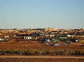 Opal was discovered there in 1930,[10] and the town developed out of the scattered miners' camps which established in the area. An Andamooka Opal Fields Post Office was not opened until 13 January 1947, and was renamed Andamooka in 1990.[11] The road into Andamooka was sealed in the 1990s, some remaining roads in the town are still unsealed.