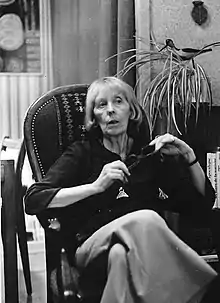 She participated with her husband in the decoration of the new Saint Joseph Church in Tassin-la-Demi-Lune,[3] created a Virgin for the church of St. Anne de Menival (Lyon), and a large oil ("l'Imaginaire") for the Jacques Prévert pre-school in La-Demi-Lune.
