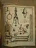 These Latin physics textbooks each contain eight plates with descriptions and images of a variety of contemporary physics devices including manometers (fluid statics), lenses/prisms (refraction), and various simple machines.[13][14][15] Coverage of electricity is relatively sparse, although many other diverse topics are surveyed, including mechanics, magnetism, celestial mechanics, fluid drag experiments, mineralogy, and human anatomy.[16][17][18] Extensive bibliographical references are provided.[19][20]