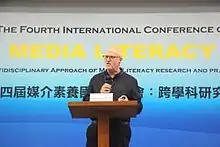 ![]() Burn addressing the International Media Literacy conference, Hong Kong, 2015 | |