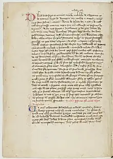 Andrew dedicated his Descriptio to Peter of Alençon.[2][3] He wrote it in France, probably around 1272, certainly before Peter's death in 1284.[3][5] Dániel Bácsatyai considered Andrew compiled his work sometime between August 1270 (Béla IV and Louis IX of France are already referred to as dead) and early 1272 (Stephen V and Bartolomeo Pignatelli, Archbishop of Messina are mentioned as living persons), most likely in 1271, incorporating his records into a coherent work.[6] Only a single copy of survives in Paris, Bibliothèque nationale de France, MS lat. 5192, a 15th-century manuscript from Naples.[7]