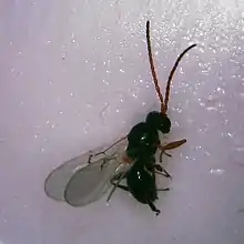 - ↑ Ward, Anna K. G.; Khodor, Omar S.; Egan, Scott P.; Weinersmith, Kelly L.; Forbes, Andrew A. (2019-09-27). "A keeper of many crypts: a behaviour-manipulating parasite attacks a taxonomically diverse array of oak gall wasp species". Biology Letters. 15 (9): 20190428. doi:10.1098/rsbl.2019.0428. ISSN 1744-9561. PMC 6769138. PMID 31551066.