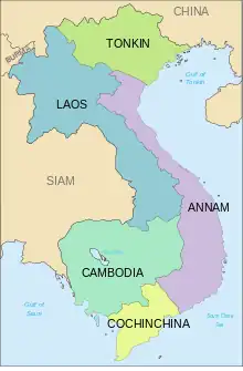 French Indochina. Cochinchina is the southernmost province, south of Cambodia.