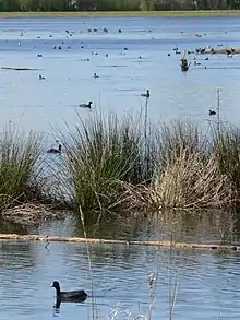 American coot (Fulica americana), northern shoveler (Anas clypeata), gadwall (Anas strepera) and other species on Pintail Marsh