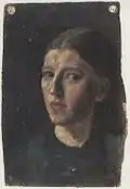 Anna Ancher was considered to be one of the great Danish pictorial artists by virtue of her abilities as a character painter and colorist.[2] Her art found its expression in Nordic art's modern breakthrough toward a more truthful depiction of reality, e.g. in Blue Ane (1882) and The Girl in the Kitchen (1883–1886).[3]