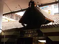 The temple is built on a 40-cent land near the Visveswarayya Tower.[2] The temple has shrines for Ganesha, Muruga, Durga, Anjaneya, Navagrahas and Nagaraja.[1] The main sanctum of Lord Ayyappa faces west with Lord Ganesha and Lord Subramanya to the left and Goddess Durga to the right, all facing east. The Navagraha shrine is located on the southeast corner of the temple and the Anjaneya shrine is located in the southwest corner, facing east.[2] The main door at the entrance is covered with brass plates. There is an auditorium, named after Sri Adisankara, covering about 3,600 sq ft,[2] which can accommodate about 1,000 persons,[1] for conducting spiritual and cultural programmes and discourses. The design of the auditorium involves the Koothambalam style found in Kerala temples.[2]