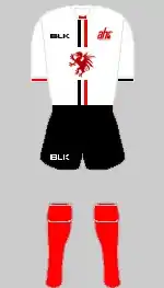 The current kit is manufactured by BLK and displays the logos of all the club's sponsors across the shirt and shorts. Current sponsors are Motis Ireland, Burger King, Rich Sauces, Tayto, Lowe, Johnston Kennedy DFK.