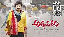 Annavaram is a 2006 Indian Telugu-language action drama film directed by Bhimaneni Srinivasa Rao and stars Pawan Kalyan, Asin and Sandhya in the lead roles.[1][2] Megaa Super Good Films produced the film. The film is a remake of Tamil film Thirupaachi. The film released on 29 December 2006. However, the soundtrack of the film was released on 14 December 2006 mixed reviews and was an average at the box-office praising Kalyan's action role. It also marked Asin's last Telugu film, to date.[3]