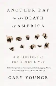 Another Day in the Death of America: A Chronicle of Ten Short Lives is a 2016 non-fiction book by the British journalist and writer Gary Younge. The book focuses on the stories of 10 American children and teenagers, ranging from the ages of nine to 19, killed by gun violence within a 24-hour time period on November 23, 2013.[1][2][3][4][5][6][7][8][9][10] The book follows the lives and deaths of Jaiden Dixon,[11] Kenneth Mills-Tucker,[12] Stanley Taylor,[13] Pedro Cortez,[14] Tyler Dunn,[15] Edwin Rajo,[16] Samuel Brightmon,[17] Tyshon Anderson,[18][19] Gary Anderson,[20] and Gustin Hinnant.[21]
