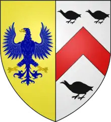 Dexter: Or, a eagle azure (Rous). Impaling Argent, a chevron gules with three coots sable (Southcote)