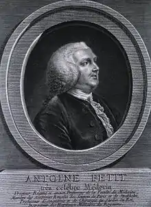 ![]() Antoine Petit drawn and engraved by Charles-François-Adrien Macret in 1775 | |