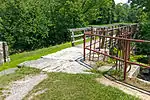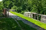 There was a stone cutting mill just at this point, on the upstream side. It cut stone from Marble Quarry (above White's Ferry on the canal), and Cedar Point Quarry (which was around Violette's lock, one lock downstream), as well as the quarries of Seneca sandstone. It was powered by canal water diverted into a mill race to a turbine.[4]: 57