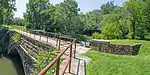 This aqueduct, made of local limestone, was damaged during the Civil War by Mosby's Raiders.[4]: 150 The stonework wall "went out" (as a boatman would say) three times: 1865, 1887, and finally in 1920.[2]: 79