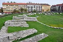 The Aquincum Military Amphitheatre is the greater of two amphitheatres in Budapest, Hungary, the other being the Aquincum Civil Amphitheatre. It is located in the Obuda district, just north near the Danube river. It was built around 145, during the reign of emperor Antoninus Pius.