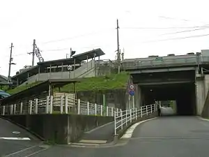The station consists of two opposed side platforms on an embankment, connected by an underground passage. The station is unattended. There is no station building except for shelters on the platforms.[1]