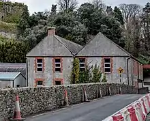 In 1881 the main four-story mill building burnt down along with Mr. Mulcahy's adjoining dwelling at Mill House. Production was rectified by 1882 with the completion of smaller replacement two-storey buildings.[3] Employment numbers were reduced to approximately 100. Rows of cottages were built by the company to house its workforce, of which had a large influence on the growth of the village and later Ardfinnan GAA as the men often played football on the green opposite the mill after a days work.[4] Electricity generated by the mill's water turbine was later provided to a total of 14 homes in Ardfinnan and all of its electric street lights until the ESB introduced the Rural Electrification Scheme which took over the supply in January 1953.[5]
