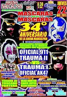1. 1 2 3 4 Saavedra, Roman Farid (December 23, 2011). "IWRG: Oficial AK-47 pierde la mascara ante Trauma I". Súper Luchas (in Spanish). Retrieved December 23, 2011.