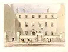 The Second Duke, known for his role in the Act of Union and the 1715 Jacobite Rising, acquired a property in 1706 and used it as his London residence along with Sudbrook Park to the west of the capital in Surrey. He expanded his landholding before later turning it over for development into a series of houses on the new Argyll Street and the adjoining Little Argyll Street. His younger brother Archibald built his own residence nearby, that subsequently became known as Argyll House. The designer of the house is unknown but James Gibbs, who helped on the development of the nearby Argyll Street for the family, may have assisted with the exterior of the building.[1] Archibald succeeded his brother and inherited the properties as Third Duke in 1743.[2] It passed on to through subsequent Dukes. The writer Lady Charlotte Bury, daughter of the Fifth Duke, was born there in 1775.[3] Harriette Wilson, the mistress of the Sixth Duke, described it as a "dismal chateau".[4]