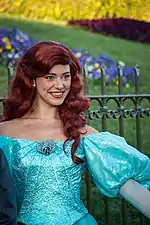 Ariel makes regular appearances in the Walt Disney Parks and Resorts, having a special location called Ariel's Grotto at most of them. Ariel's Grotto was torn down at Walt Disney World's Magic Kingdom owing to the Fantasyland expansion.[40] In May 2023, the version of Ariel from live-action film adaptation began making appearances at the Disney Parks.[41] "The Little Mermaid" mini-land can be found in the Magic Kingdom's New Fantasyland. It includes a replica of Prince Eric's Castle, a dark ride called Ariel's Undersea Adventure, a market called "Prince Eric's Village Market", and Ariel's meeting grotto.[42] She has a major role in Mickey's PhilharMagic and stars in her own live stage shows at Disney's Hollywood Studios and Tokyo DisneySea. A dark ride based on the movie was designed for Disneyland Paris but never built. A re-designed version of the attraction, called Ariel's Undersea Adventure, was built as part of the major expansion for Disney California Adventure Park.[40][43] She also has her own hotel at the Disney's Art of Animation Resort. There is a land in Tokyo DisneySea titled "Mermaid Lagoon". It features many rides and attractions themed around the Little Mermaid. A clone of the dark ride found in Disney California Adventure Park and Magic Kingdom was to be a part of Fantasyland in Hong Kong Disneyland but was never built. A clone of the dark ride was also supposed to be in Tokyo DisneySea but was canceled due to budget reasons.[44]