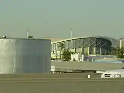 The Arizona State Fair Commission began planning for an "Arizona State Fairgrounds Exposition Center" as early as February 1960.[2] The Commission envisioned an indoor facility which could be used during the State Fair as well as year-round. In 1964, Phoenix architect Leslie Mahoney, of the Lescher and Mahoney firm (designers of the Orpheum Theatre in downtown Phoenix among others) presented the commission with the final plans, and construction began that summer.[3] Tucson architect Lew Place (son of University of Arizona chief campus architect Roy Place, and who later took over his father's firm) was also involved in the design. The structural engineering firm was T. Y. Lin International.[4]