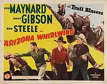 Arizona Whirlwind is a 1944 American Western film directed by Robert Emmett Tansey. It stars Ken Maynard, Hoot Gibson, and Bob Steele.[1]