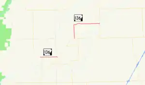 Highway 136 begins at Highway 135 east of Rivervale. The route runs east to concur northeasterly with Highway 140. The route continues alone to Etowah, where it passes the Garden Point Cemetery and Edward Samuel Wildy Barn, both listed on the National Register of Historic Places.[4] The highway turns east to terminate at Highway 77 at Carroll's Corner.