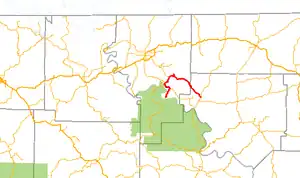 AR 177 begins in Herron and heads north to meet AR 5 in Norfork. It concurs with AR 5 north until Salesville. North of Salesville, AR 177 serves the Norfork National Fish Hatchery, the Quarry Cove Use Area, and bridges the Norfork Dam. The route turns south to pass through Jordan and Iuka before terminating at AR 223 in Pineville. AR 177 is a 2-lane paved highway for its entire length.[1]