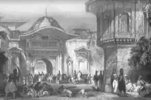 At this point, Guilleminot transitioned from an active military career into a more administrative capacity.[6] He was deeply interested in Freemasonry and studied it in his retirement.[6] In 1816 and 1817, he worked to set French/Swiss land boundaries and in 1818 became part of the kingdom's defense commission.[6][3][2] In 1821, he became the great standard-bearer of the Conseil d'État and in 1822, he was director of the war depot and aided in its reorganization.[3][7][6] In 1823, during France's Spanish campaign, he became the head-of-state for the duke of Angoulême and handled the military initiatives.[3] He was also made the major-general of the Army of the Pyrenees.[2] Later that year, King Louis XVIII gave him control of the French Embassy in Constantinople, where he served as ambassador for nearly 10 years.[7][6][5][3] While there, he worked with Sultan Mahmut II on Ottoman reformations.[2] In 1831, he returned to France and became the chairman of the border commission of the eastern French borders following the July Revolution.[7][3] He also joined the new defense commission in 1836.[7][3]