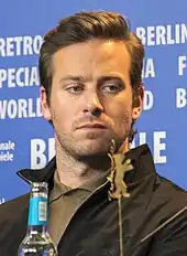 In 2017, Hammer starred as Oliver in Call Me by Your Name, starring opposite Timothée Chalamet and Michael Stuhlbarg. The film, an adaptation of an André Aciman novel of the same name, was directed by Luca Guadagnino. Production began in May 2016, and the film premiered at the 2017 Sundance Film Festival.[47] For his performance, Hammer received acclaim and nominations for the Critics' Choice Award, the Independent Spirit Award, and the Golden Globe for Best Supporting Actor. Film critic Richard Lawson of Vanity Fair asserted that Hammer utilized "his ludicrous proportions and chiseled handsomeness to great, surprisingly witty and sensitive effect."[48] Hammer's acclaim was further echoed by Peter Travers; he wrote for Rolling Stone magazine: "a revelation, giving his most complex screen role to date the tightrope thrill of full immersion."[49] Often highlighted was the "ridiculous chemistry" between Hammer and Chalamet, in which Christy Lemire of RogerEbert.com found the pairing successful, in part due to Hammer's skill in finding the "tricky balance between the character's swagger and his vulnerability as he gives himself over to this exciting affair."[50] Hammer also narrated the audiobook, which was published by Macmillan Publishers.