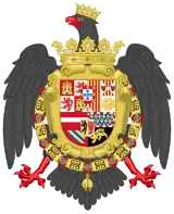 An heraldic eagle as supporter, the open royal crown of Naples and Sicily and the collar of the Order of the Golden Fleece