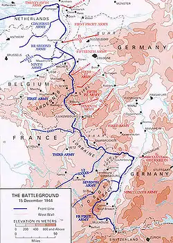 On 26 November 1944 the Germans organized the Upper Rhine High Command to defend the upper Rhine.[1][2] Hitler placed SS Reichsführer Heinrich Himmler in command on 10 December,[3] believing that Himmler's presence would stimulate extraordinary efforts by both German military and Nazi Party officials in the region.
