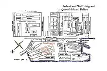 - ↑ "2: Harland & Wolff – Fig. 3: Plan of the Queen's Island Works". The Shipbuilder (Special Number): 7. Summer 1911 – via Archive.org.