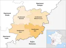 The 4 arrondissements of the Lot-et-Garonne department are:[1]