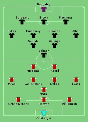 Neither team made personnel changes during half time.[1] Six minutes into the second half Daniëlle van de Donk passed the ball to Miedema, who took a shot with her right foot from the centre of the penalty area that landed just inside the goal.[1][31] Nobbs became the fourth goalscorer of the game three minutes later when she sprinted into the penalty area to shoot from a long pass from Miedema, making the score 7–0.[1][32] Miedema and Evans then set each other up for the goals that followed.[1] First, Evans assisted Miedema with a pass from the edge of the penalty area, who, after a short run, scored Arsenal's eighth.[1][33] Next, on the hour mark, Miedema's chip over the defence set up Evans for her second goal of the day, bringing the score to 9–0.[1][2] Four minutes later Miedema scored her sixth goal (and completed her second hat-trick) to send Arsenal into double figures. When she was substituted out of the game after seventy minutes, she received a standing ovation.[1][34] Her replacement, Emma Mitchell, scored the home team's final goal of the day after a pass from Mead, making the score 11–0.[1] Bristol City were awarded a late penalty after their Belgian international striker Daniëls was fouled by Arsenal's goalkeeper Zinsberger in the penalty area. Zinsberger had been dispossessed by Daniëls while she was trying to pass the ball away. Zinsberger initially saved Daniëls's penalty kick, but Daniëls was able to get to the rebound first and score the last goal of the match, giving Bristol City a consolation goal. The final score was 11–1.[1][35] By the end of the game, Arsenal had taken thirty-four shots, an average of one about every three minutes.[1][36]