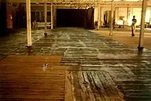 An establishing grant from the Queen Elizabeth 2nd Arts Council (Creative New Zealand) of $3,000 enabled members to refurbish the large space, sand and varnish floors into circular "floor stages" in the round for both performers and audience. Members also constructed several large, portable sound baffle walls that were wheeled around to dampen the reverberant spaces and isolate the stages. Artists also constructed their own office and studios.[2][5]