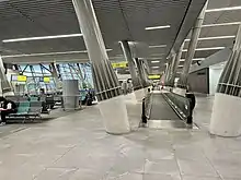 The terminal building, originally built for both domestic and international operations until 2021, has four levels: