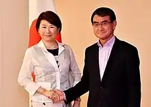 Asako Okai entered the Ministry of Foreign Affairs and held various positions throughout her career.[3] She worked in divisions related to culture, economic cooperation, policy planning, and international cooperation.[3] Some notable positions included deputy director of the Western Europe Division, First Secretary at the Embassy of Japan in Pakistan and deputy director of Australia Division, Director of the Policy Division in the Economic Cooperation Bureau, and Director of the Humanitarian Assistance Division.[1][3]